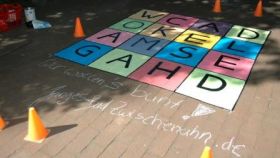 Erste Hüpfkästchen am Jugendzentrum und am Alten Kurhaus bringen Farbe ins Ortsbild. ?