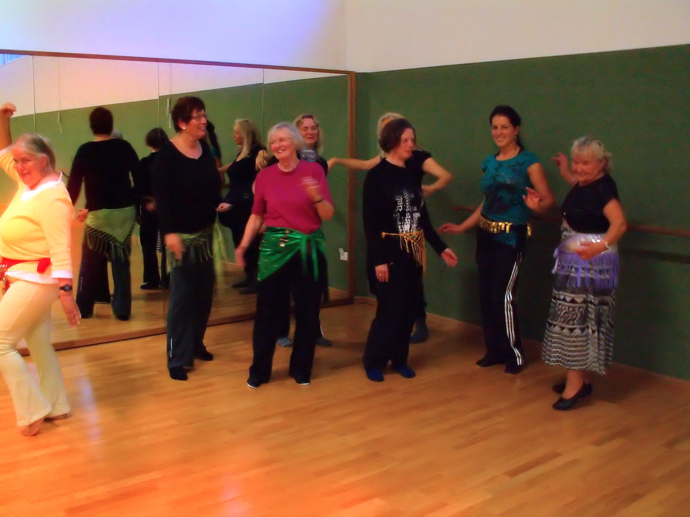 die weichen sanften Bewegungen der Hüften, fließende Arme und Hände, Drehungen, Schritte und auch die temperamentvollen Kippen und Pendel, alle Grundbewegungen haben die Frauen des Anfängerkurses gelernt und möchten auch weiterhin gemeinsam miteinander tanzen.