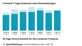 Corona Info 26.03.2022 Gemäß Corona-Dashboard des Robert-Koch-Instituts (RKI) vom 26.03.2022 um 3:18 Uhr liegt der aktuelle Inzidenzwert bei 1.871,3 *. Im Vergleich dazu ist die bundesweite Inzidenz von 1.758,4 niedriger und die von Niedersachsen mit 2.042,6 höher. Bisher wurden im Landkreis Friesland...