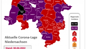 Corona Bericht 30.04.2022 Gemäß Corona-Dashboard des Robert-Koch-Instituts (RKI) vom 30.04.2022 um 3:10 Uhr liegt der aktuelle Inzidenzwert in Friesland bei 904,3