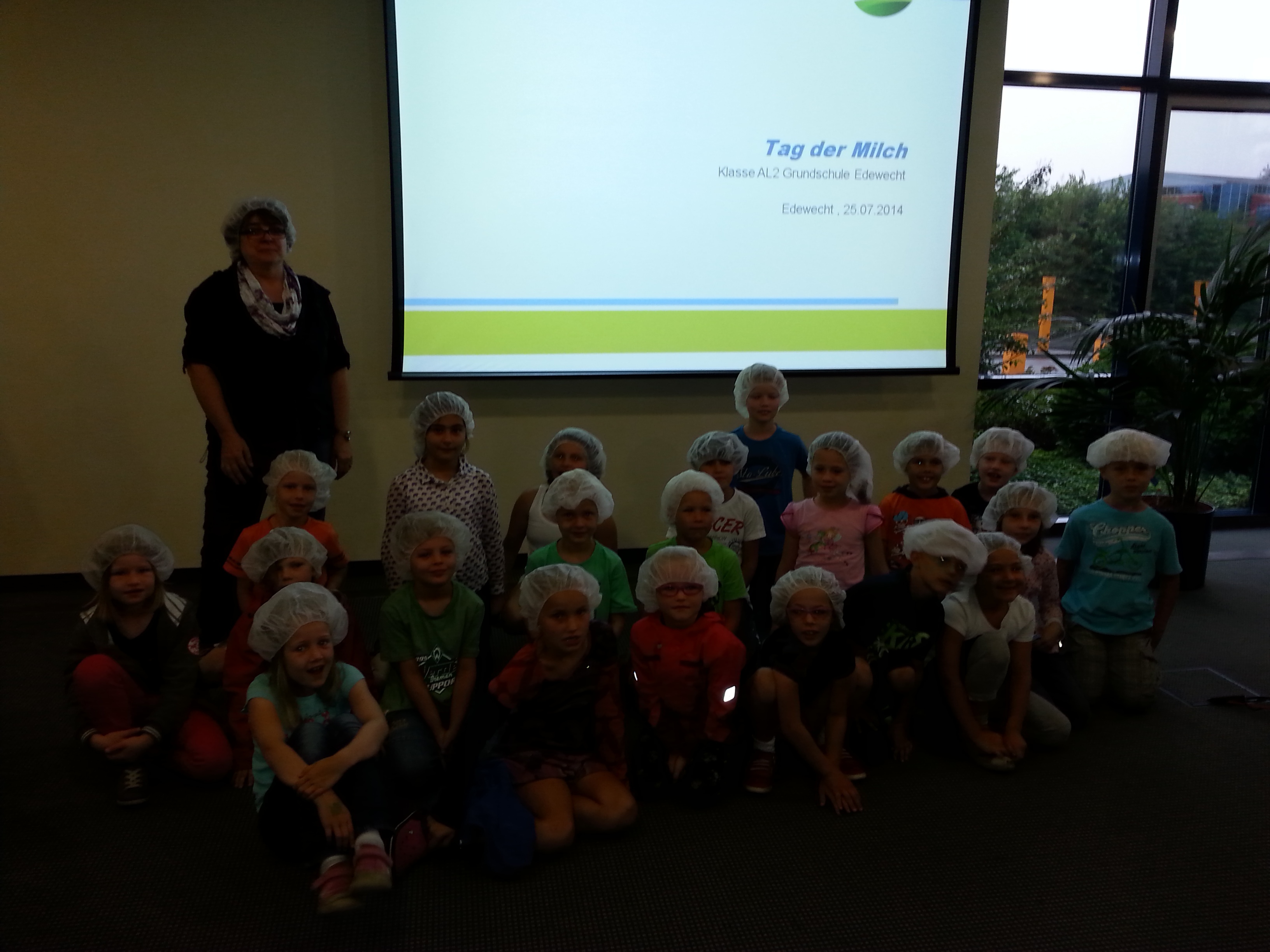 Edewecht Die Klasse hatte in den letzten Wochen das Thema Bauernhof im Unterricht durchgenommen und hat sich an der NWZ Aktion „Das Leben auf dem Bauernhof“ mit einer ganz besonderen Kuh aus Holz beteiligt. Um das Thema abzurunden haben die Kinder die DMK genauer unter die Lupe genommen und sich angesehen, was dort mit der Milch weiter geschieht, bis sie dann irgendwann im Supermarkt landet. Thomas Krause, Mitarbeiter der DMK, hatte eine tolle Präsentation vorbereitet, von lehrreichen Inhalten, was die Kuh frisst und trinkt, wie viel Milch sie gibt, bis hin, was so in der Milch an Nährstoffen drin ist. Sehr schön hat er auch veranschaulicht, wie viel Milch jeden Tag in der Molkerei verarbeitet wird (7 x das Schwimmbecken des Edewechter Schwimmbades voll mit Milch) und was daraus gemacht wird, alles verpackt in ähnlich guten Vergleichen! Es ist auch eine Menge von den Inhalten „hängen“ geblieben bei den Kindern. Danach haben wir die DMK natürlich besichtigt, die Kinder waren sehr aufmerksam, haben sich sehr für die einzelnen Stationen interessiert. Die Jungs waren angetan von den Robotern, die die Paletten gepackt haben und wie die Paletten dann weiter ins Hochregal befördert wurden. Es war ein sehr gelungener und informativer Ausflug, der sich absolut gelohnt hat. Vielen Dank, dass wir dort sein durften!