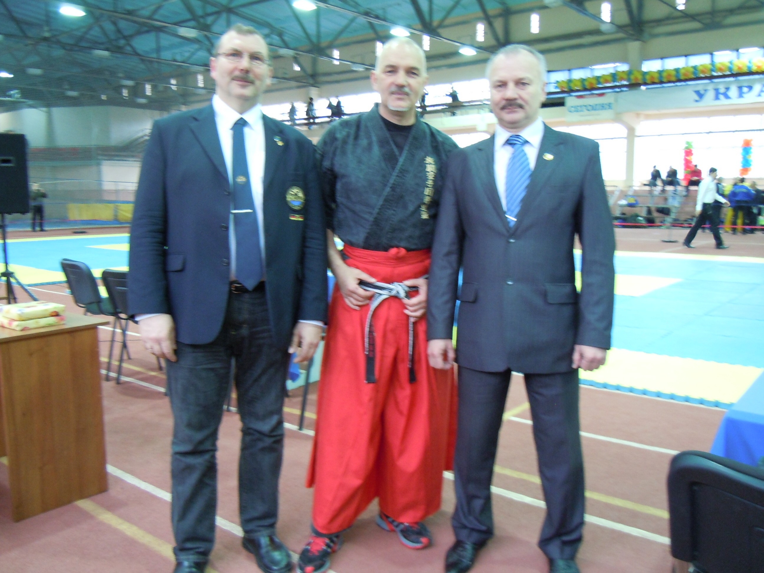 Edewecht / Husbäke/Ukraine In Kharkiv (Ukraine) fand in der Zeit vom 15.-17. April 2011 eine militärische Mehrkampf Kampfkunst Weltmeisterschaft statt. 430 Teilnehmer aus 14 Nationen waren zu Gast in Kharkiv. Diese Mehrkampf-Weltmeisterschaft beinhaltet Kata mit und ohne Waffen, Kickboxen (Leicht-, Semi- und Vollkontakt), Luftgewehr schießen und Messerkampf. (keine echten Messer). Renshi Peter Kluß (TSG Husbäke) war auch zu Gast. Seine Aufgabe war es, Sergii Zaitsev 10. Dan und Präsident der MSAC (Martial and Sport All-Round Competitions) als Referent für den Jubiläumslehrgang "10 Jahr IMAF" im Juni zu gewinnen. Sergii Zaitsev sagte zu und versprach noch einen Assistenten mitzubringen.