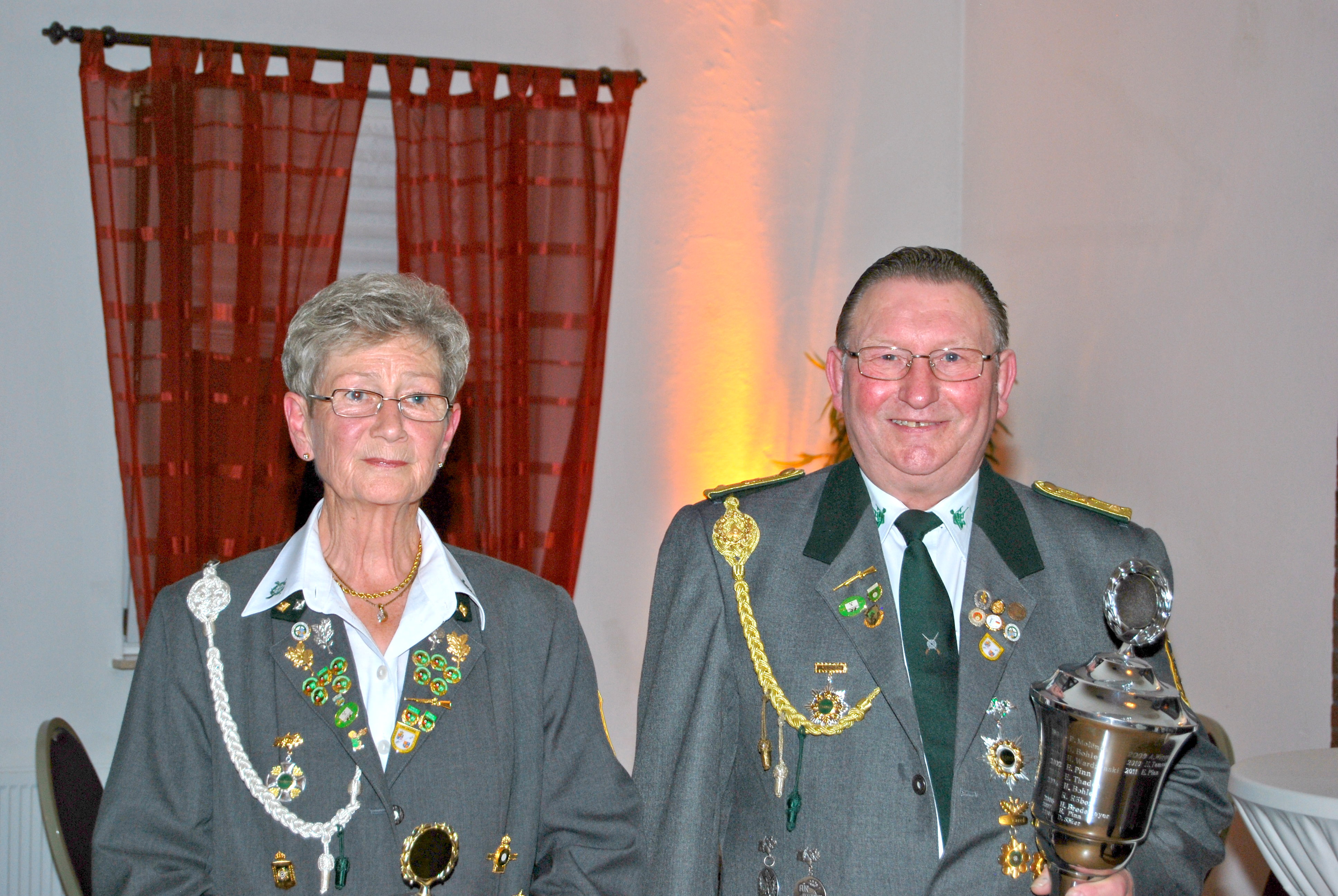 Gegen 21:00 Uhr wurde se Offiziell: Das neue Kaiserpaar wurde Proklamiert. Den Titel konnte Ursel Wilhelm und Dieter Söker erringen. Auch wurden die Sieger vom Pokalschießen der Schützenvereine geehrt. Die beste Mannschaft waren Schützen des Schützenvereins Linswege - Petersfeld. Die erfolgreichen freuen sich über den Pokal. Als beste Einzelschütze wurde Jan Dieter Siefediers ( SV Linswege - Petersfeld mit 200 Ringe ) und bei den Damen Angelika Hagen ( SV Bohlenberge mit 193 Ringe ),
