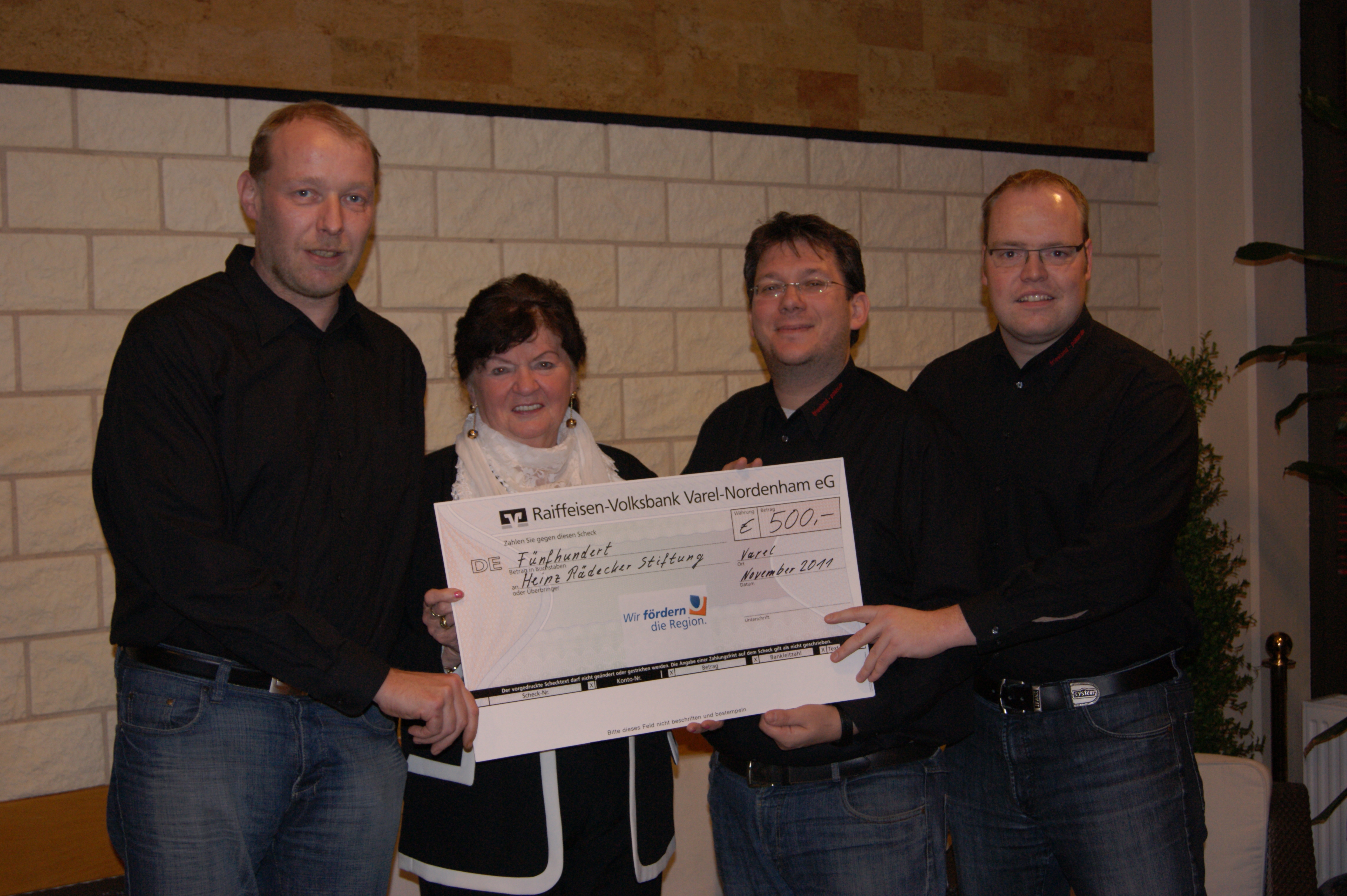 Varel / Tivoli Varel Auch dieses Jahr sammelte der Vareler Poker-Club ?Friesland-Poker? bei jedem Turnier eine kleine freiwillige Spende von den Teilnehmer und so kam nach 12 Turnieren und einer kleinen Aufstockung durch den Club selbst, die großartige Summe von 500? zusammen.