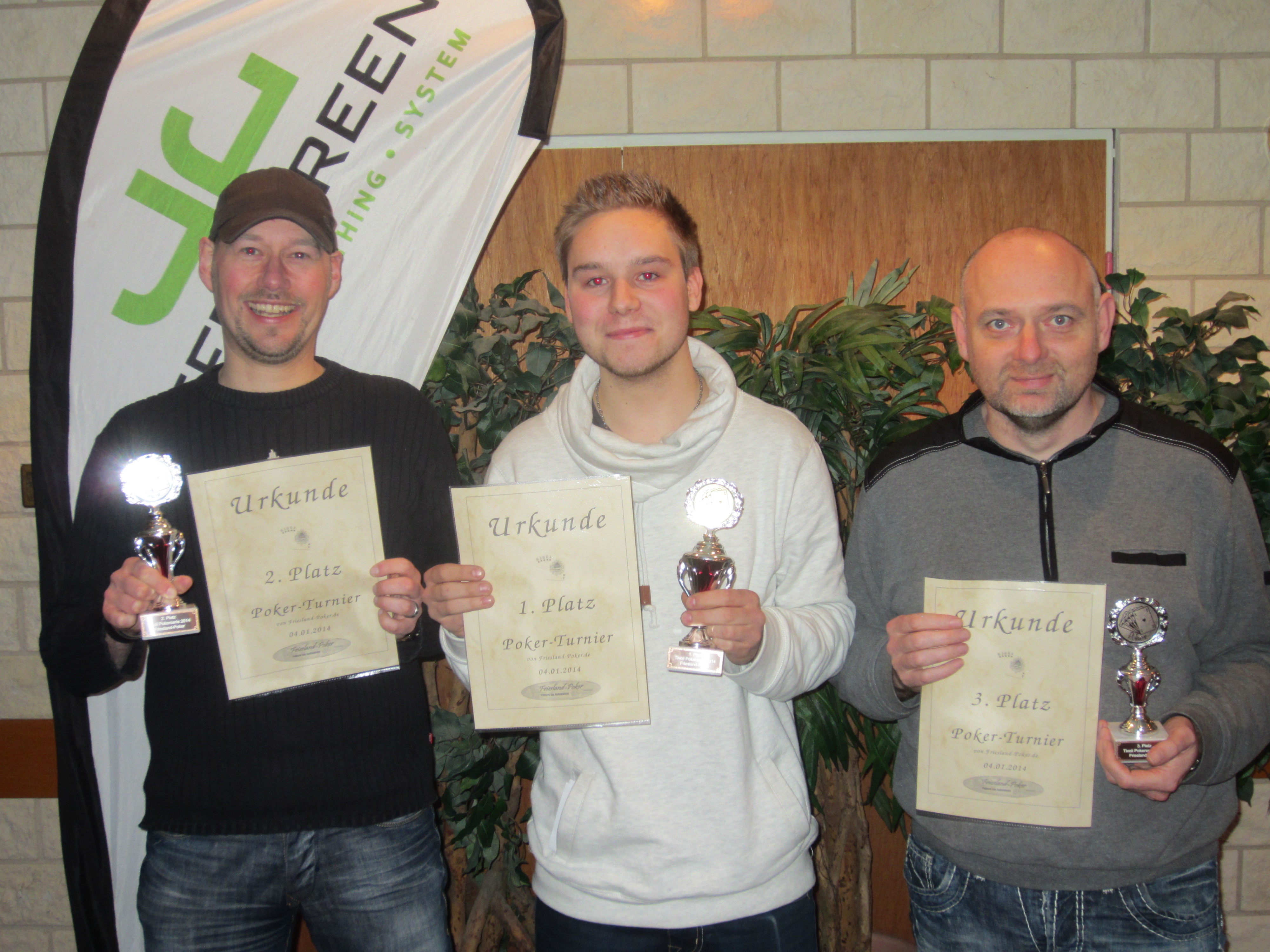 Am 04.01. begann die neue Saison für den Vareler Pokerclub im Tivoli mit dem ersten Turnier der Pokerserie 2014. Mit der sensationellen Rekord Beteiligung von 120 Teilnehmern erreichte Friesland-Poker das größte Turnier in der 6 jährigen Geschichte. An insgesamt 13 Tischen spielten jung und alt wieder um Sach- und Gutscheinpreise von ansässigen Firmen und Punkte für die Jahreswertung zum Finale der Vareler Poker Stadtmeisterschaft 2014 im Dezember. Selbstverständlich konnte sich die drei Sieger auch noch über Pokale und Urkunden freuen. Nach spannenden 9 Stunden, was ebenfalls ein neuer Rekord in der Geschichte von Friesland Poker ist, standen die Gewinner des Abends fest. Steven Wodge siegte vor Stephan Wessels und Gerrit de Graaff.
